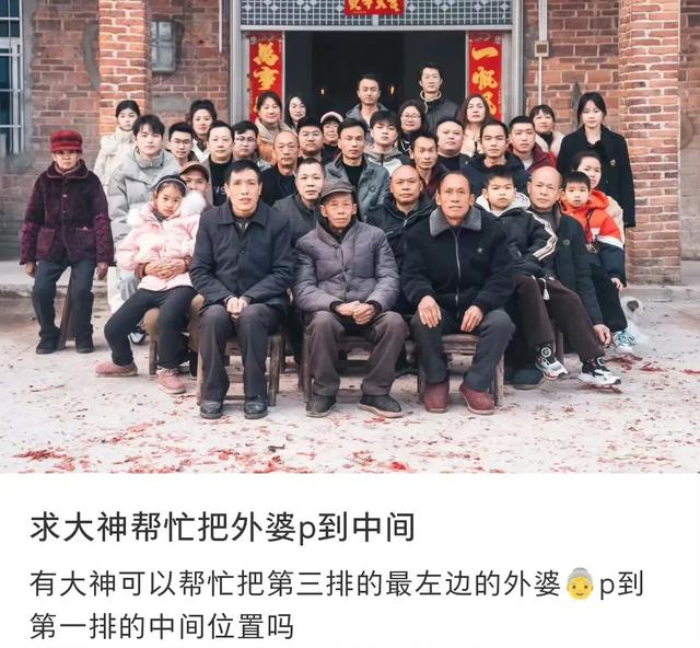 首先,他們安排了四個長凳子,外公坐在第一排中間,兩個大兒子坐在外公左右側,後面三個凳子、也都是男性坐。其次,女性是在最後一排站著,外婆則是被安排到第三排的最左邊,顯得格格不入。看到這一張全家福,女孩越看越覺得心酸,於是,她尋求廣大網友們幫忙:「有大神可以幫忙把外婆、修圖到第一排中間位置嗎?」怎料,留言區的網友都在紛紛議論:「p不p到中間重要嗎?外婆這一生都像這張照片一樣度過了。」、「但凡家裡有個正常人,都不會讓老太太坐在最邊邊。」、「多不孝順的家庭,才能拍這種照片啊!」