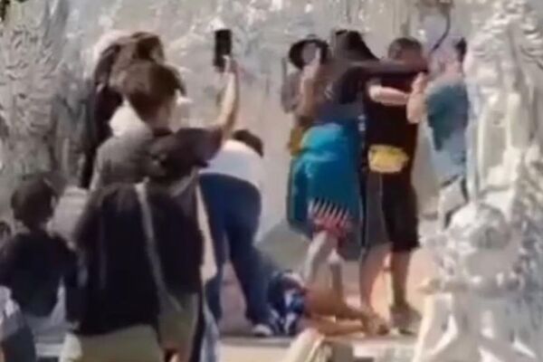 緊接著趕到的泰國遊客因為被擋住去路相當不滿,於是上前理論,沒料到雙方因為語言不通無法有效溝通,火氣越來越大,最後從口角升級為肢體衝突,竟在莊嚴的佛寺內上演全武行,讓在場民眾全都看傻了眼。