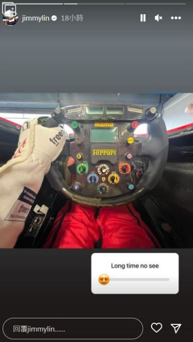 來到米蘭,熱愛賽車的林志穎當然沒有放過這次機會,他們造訪了義大利知名的國立蒙札賽車場,他在IG限時動態曝光多張照片,只見他一身紅色賽車服配上一雙小白鞋,在賽道旁,看起來躍躍欲試!後來他也坐進法拉利賽車,手握方向盤興奮喊:「Long time no see!」