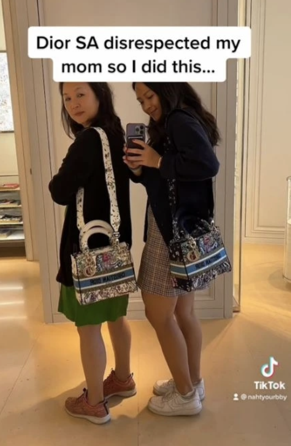 一名網友Amjea日前就在抖音上分享自己媽媽經歷的負面體驗,原來她的媽媽近日獨自到羅馬的DIOR門市購物,不過由於穿著太過隨意,店員竟拒絕給她看喜歡的包包款式,還揶揄地說「那款包太貴,妳可能買不起!」,之後就轉身去接待其他客人,最後媽媽在門市發呆了10分鐘後只能無奈回家。
