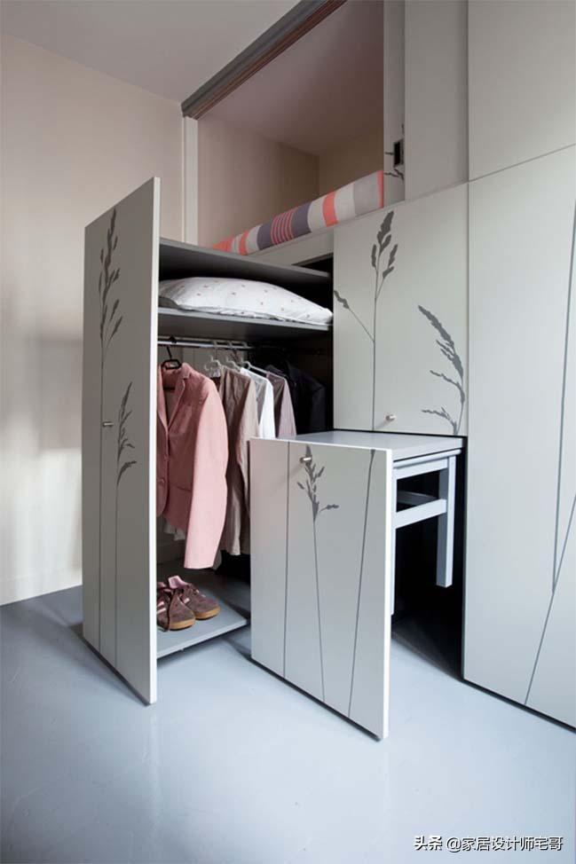 下面的區域還可以放置鞋子,很好地解決了整個空間的衣物收納問題。