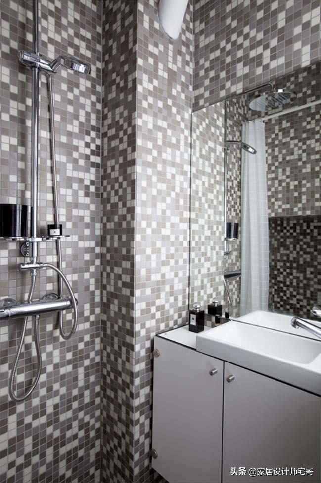 整個衛生區均貼了馬賽克式的牆磚,打造出一種現代和高級的感覺,使用起來也很方便。