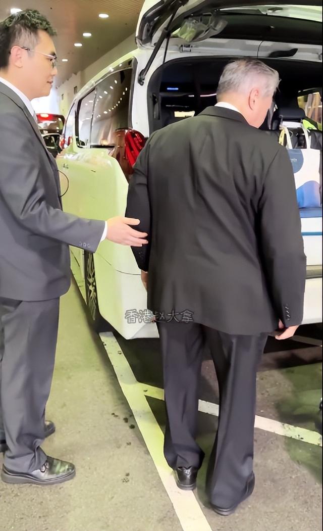 輪椅到了車子旁邊之後,洪金寶一下子就從輪椅上站了起來,不用任何人的攙扶就坐在副駕駛上,體態還是很正常的。