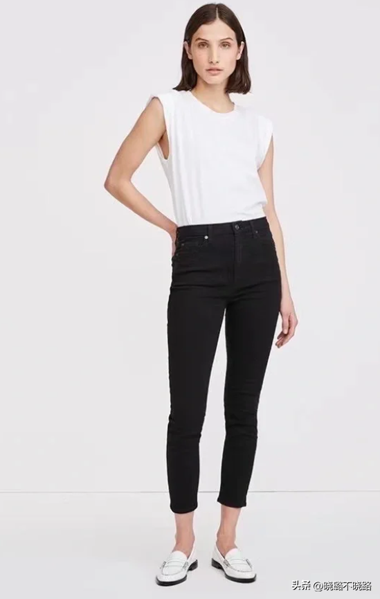 為什麼建議各位女性盡量不要穿黑褲或者是少穿呢?因為這一款褲型其實在整體的視覺上對於腿型雖然有著一定的顯瘦肚的,而且走在街上真的是屬於爛大街的類型,所以建議大家還是極少搭配吧。
