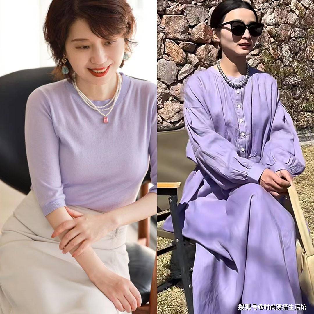 時而浪漫溫柔,時而神秘獨特的紫色,經常讓人沉迷。按照顏色深淺程度,紫色也分淡紫色和正紫色,這兩個顏色都適合年紀大的女人,並不用刻意去迴避淺紫色。