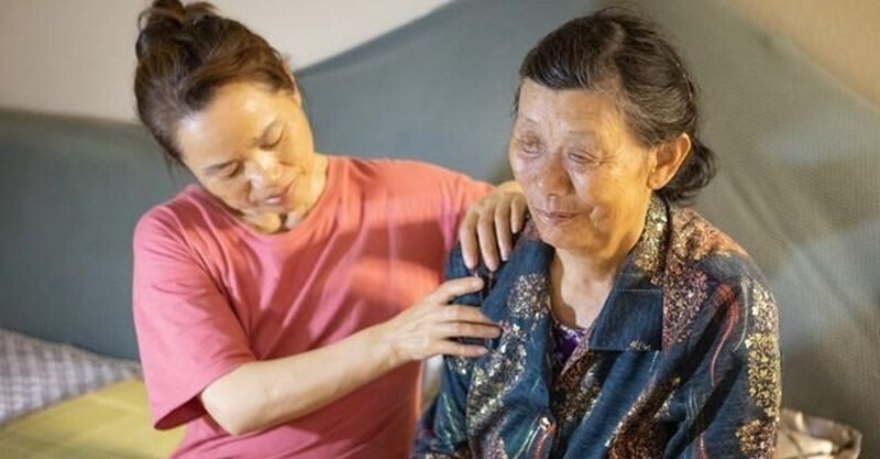 她只是輕輕地看了一眼小推車當中的寶寶,就拿起手中的被子快步地走向了正在出來的兒媳婦,給兒媳婦輕輕地蓋了上去,並且給了兒媳婦一個大大的擁抱,隨後用右手輕輕的擦拭,因為心疼兒媳婦,眼角流出的淚水。
