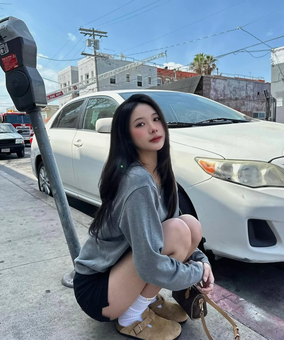 前幾個月,她曾PO出5張街頭照。照片中,她穿著灰上衣、黑短褲,穿著茶色絨毛拖鞋,在街邊隨意一蹲,優雅又不失愜意,素顏系妝容搭配一抹微笑,更為美照增添不少光采。當時就有不少網友盛讚,「太正!繳費機都被妳正歪」、「腿超長,給我你的腿」、「omg太美了吧」。