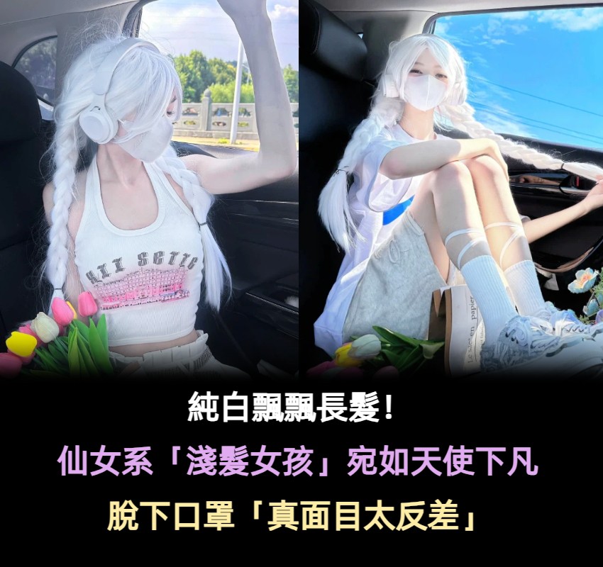 純白飄飄長髮!甜美仙女系「淺色長髮女孩」宛如天使下凡 脫下口罩「竟是成熟御姐」反差超強