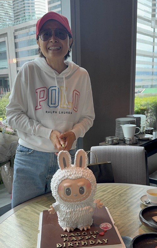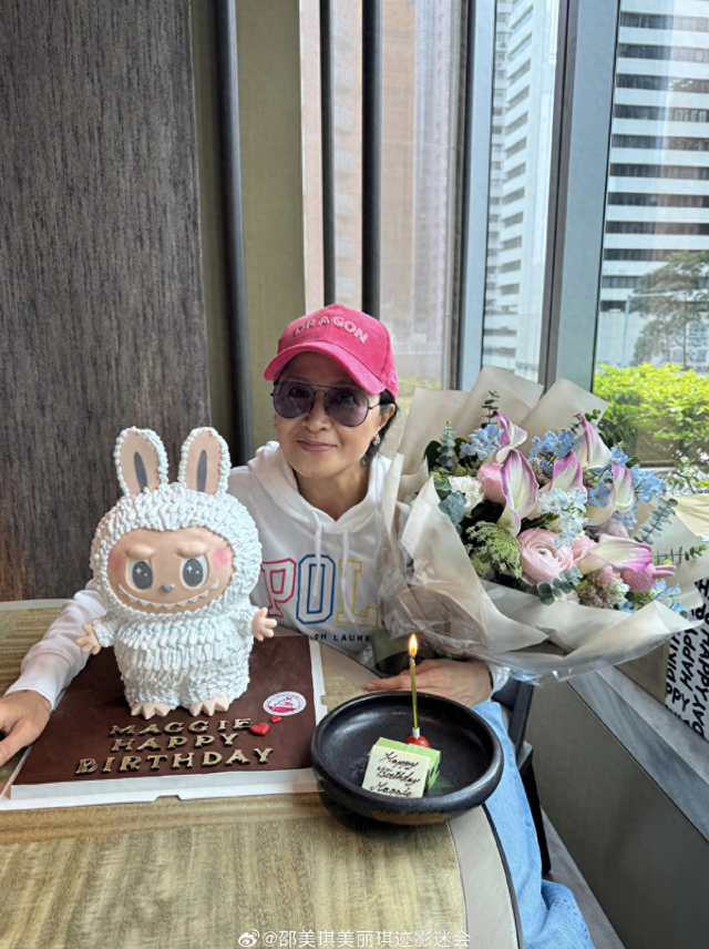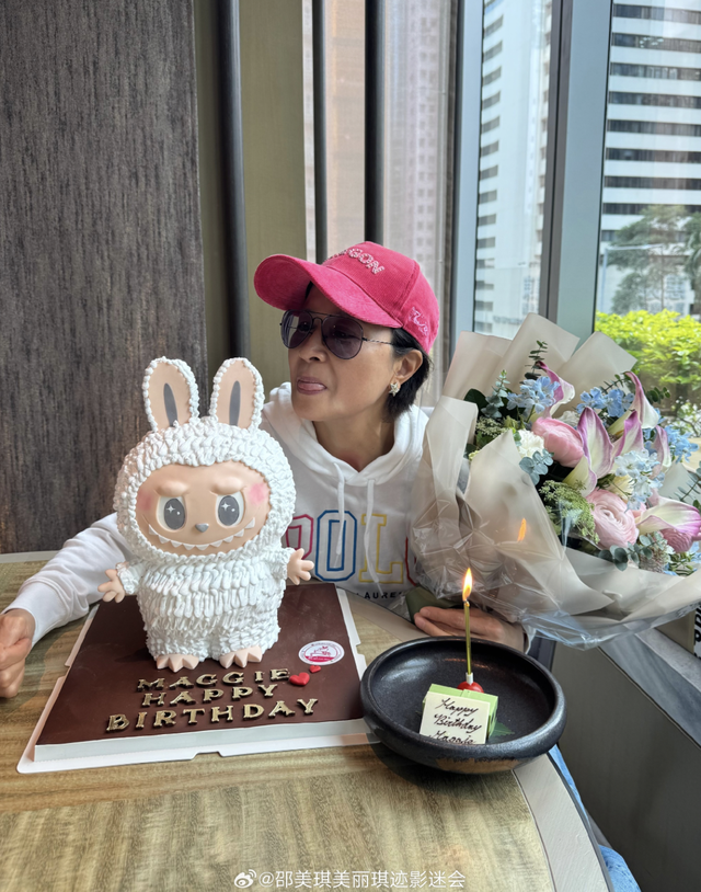 邵美琪的粉絲幾乎每年都會為她慶祝生日,今年她迎來60歲的生日,雖然沒有大肆慶祝,但是心意十足。粉絲們在某個酒店的餐廳為她慶生,事前就給她送來了一束百合花,還準備兩個精美蛋糕。一個蛋糕是抹茶的,擺拍精緻且小巧,應該是酒店餐廳贈送的,另一個蛋糕就十分華麗,是一隻Labubu造型的蛋糕。這個蛋糕並不小,做工精緻,可見粉絲極為寵她,而邵美琪對Labubu也十分喜歡,對著這個蛋糕笑不攏嘴,合照的時候還蛋糕不離身,切蛋糕的時候更是開懷大笑,在粉絲面前展現出極為親民的一面。