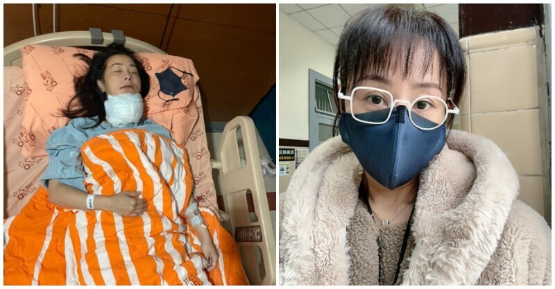 術後狀態與術前形成鮮明反差。照片中,他手背插著輸液管,一度需以輪椅代步。術後行動受限,他需由兩位醫護人員攙扶,並依靠拐杖在樓梯間緩慢移動,每步都顯得吃力。