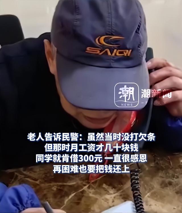 然而值得一提的是,該名84歲的老人對民警說,當時自己跟老同學借錢的時候沒有打欠條,當時月工資才幾十塊錢。同學肯借給自己300元錢,真的算是誠心誠意對待他的。而這當時的300元錢,等於老同學大半年的工資了。