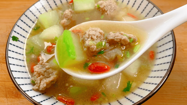 那麼夏天最適合喝什麼湯呢?湯類也是以清淡為主,不要過於油膩。俗話說:「夏天吃一瓜,中藥不用抓」,那當然少不了冬瓜丸子湯了。冬瓜是夏秋季節的時令蔬菜,它的名字被誤認為是冬天的應季菜,這期間正正大量上市,價格便宜,冬瓜中含有大量的水分、多種微量元素、礦物質、氨基酸、蛋白質及豐富的膳食纖維。天熱多吃它,可以及時的補充水分、利尿清熱、減肥排便、美容養顏。冬瓜最適合夏天的吃法就是煮湯,下面小編就和大家分享冬瓜豬肉丸子的做法,一起來來看看是怎麼做的吧!