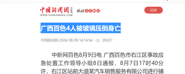 廣西百色發生一件令人痛惜的事,四名工人在裝卸玻璃時,不幸發生意外,致使四人被玻璃活活壓死。