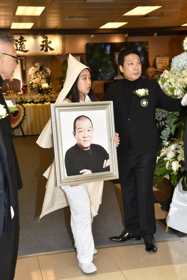 孟海的葬禮上,女兒捧著遺照步出靈堂。