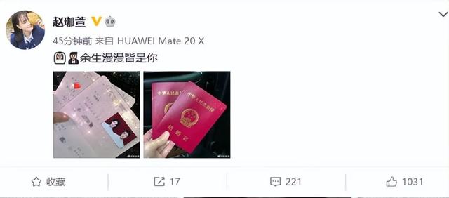 她還在其他平台也發布了結婚領證的消息,曬出多張夫妻甜蜜合照寫道:「無論是順境或者逆境、富俗或者貧窮、健康或者疾病、快樂或者憂愁,我都永遠愛著您、珍惜您,對您忠實,直到永永遠遠。」