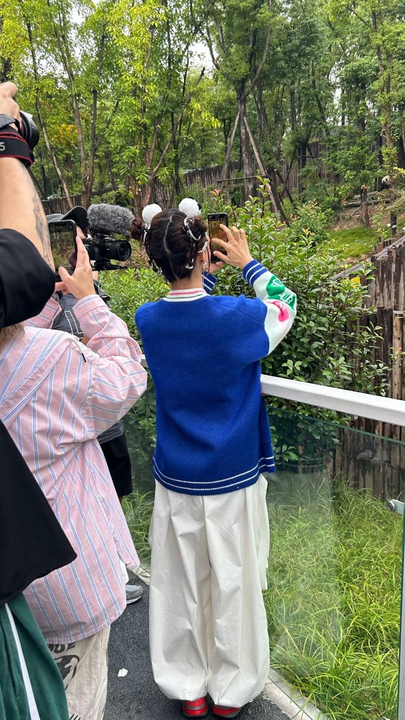 據《中時新聞網》報導,蔡依林先前在成都開唱,抽空去熊貓基地看當地最有名的大熊貓,被不少粉絲巧遇,只見她俏皮用熊貓頭飾扎兩顆丸子頭,身穿藍色棒球外套、白色休閒褲,充滿少女心,她站在圍欄前隱身在人群中,嬌小的她踮起腳尖、高舉手機,努力想拍到熊貓啃竹子的畫面,完全不介意被人群擠來擠去。