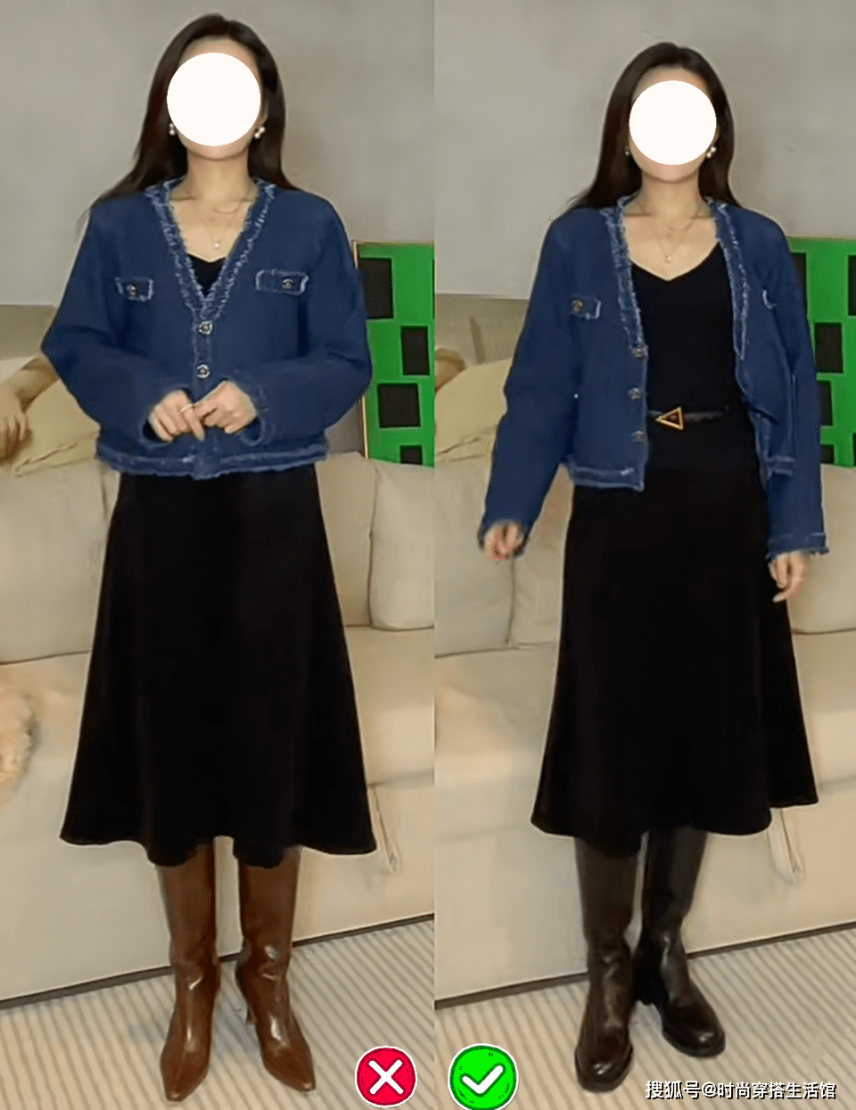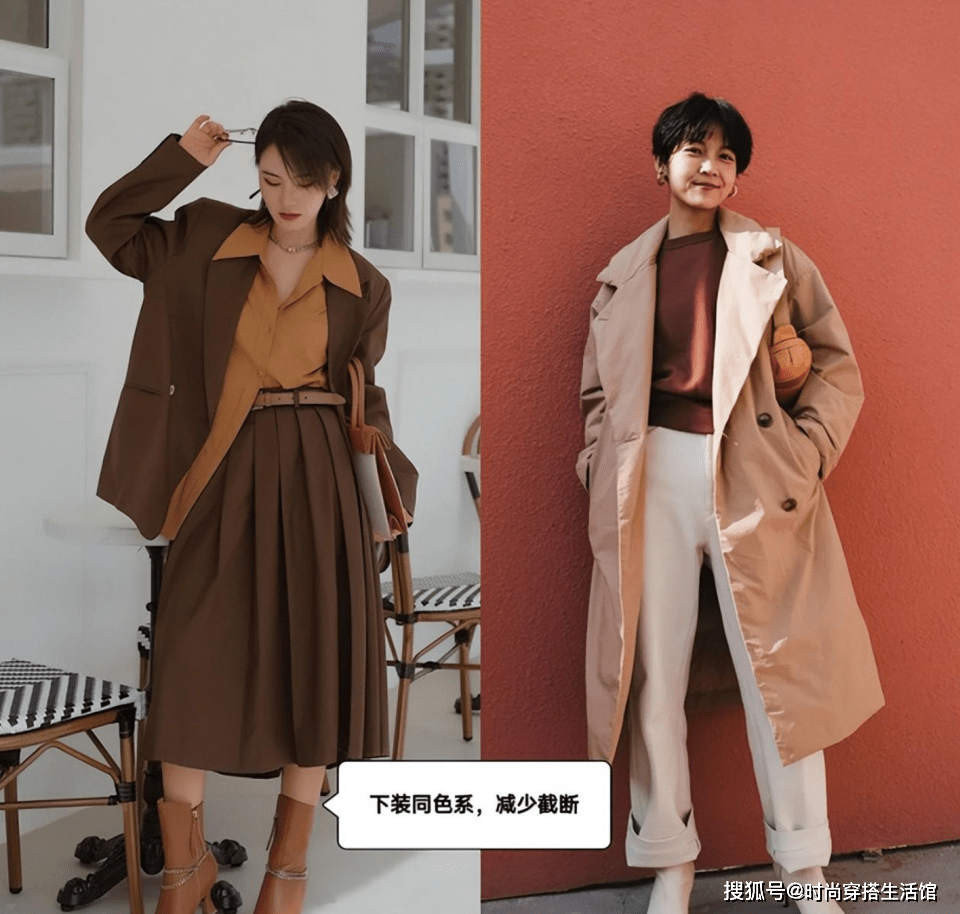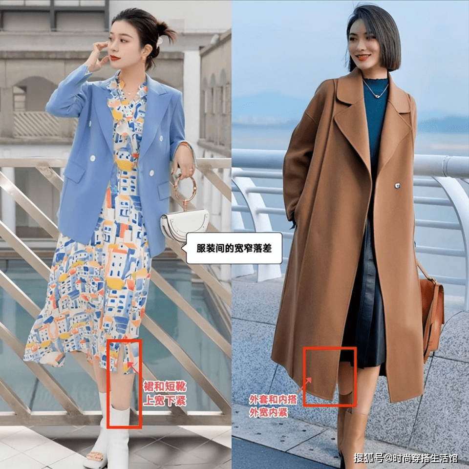 所以我們在穿的時候要盡量去拉開這兩種單品之間的距離,從而讓我們的下半身有更明顯的輕盈感,而且也會更顯瘦。