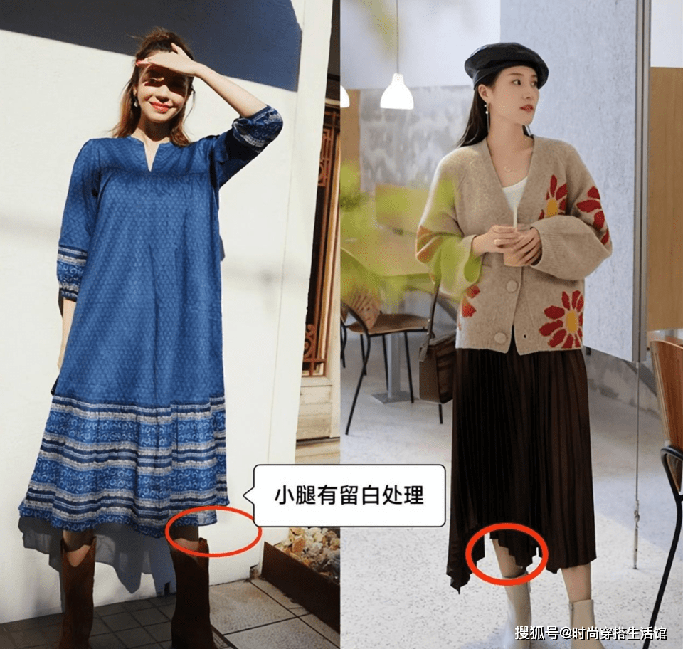 就比如上面這些女生,她們在穿的時候一定會露出一定的腳踝肌膚,不會完全把下半身的肌膚給遮擋住,假如你把雙腿給擋住,這樣就會導致局促感,顯得臃腫又厚重。