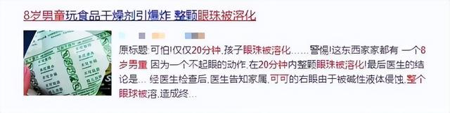 因為在2014年就有一位8歲的兒童因不當使用乾燥劑導致眼球被溶,致使永久性失明。