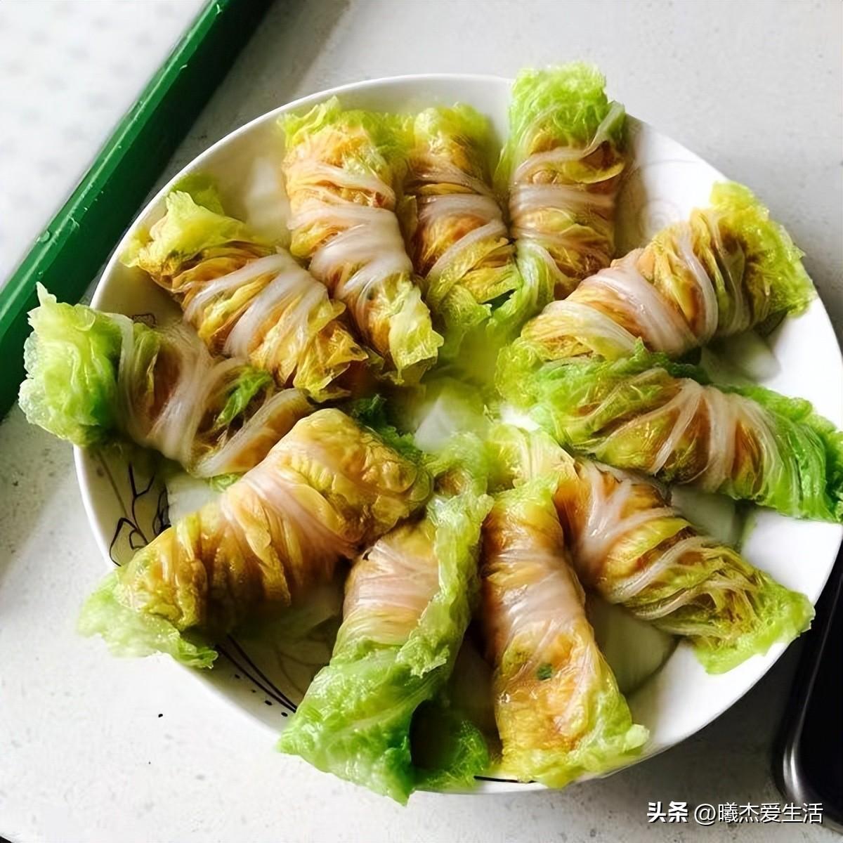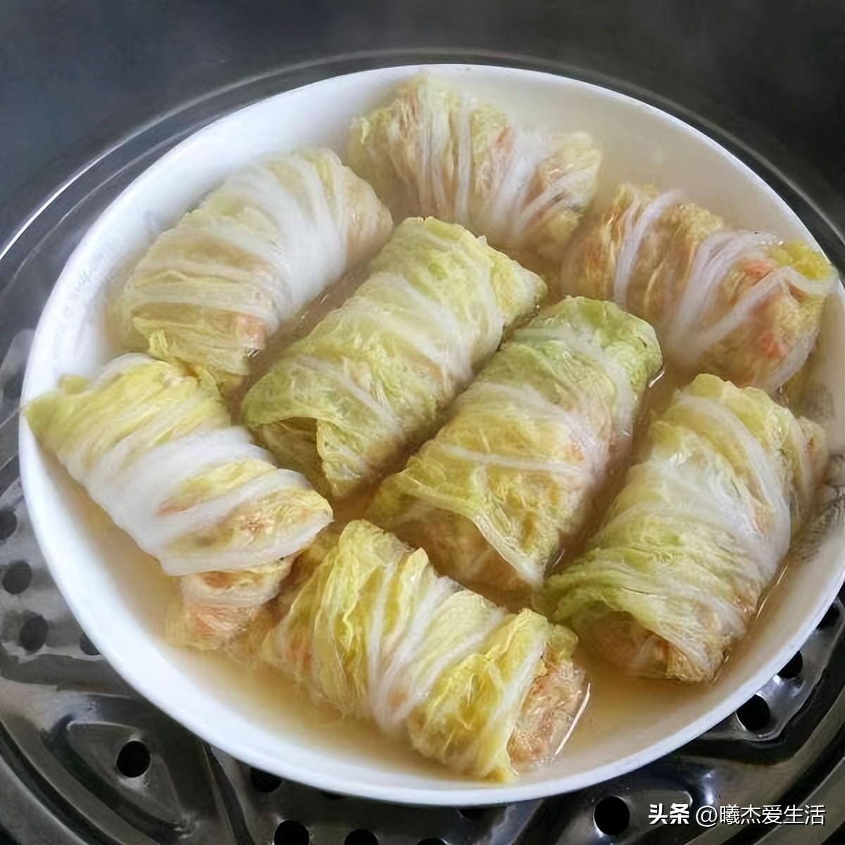 用白菜葉把肉末捲起來,蒸著吃,味道一絕。