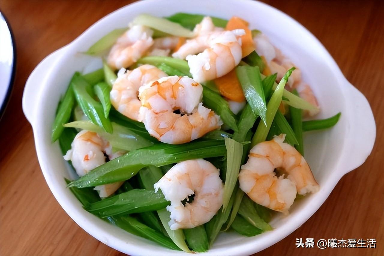 3.起油鍋,先下蝦仁炒至半熟鏟起,再起油鍋炒芹菜至半熟,放蝦仁同炒,下鹽調味,炒熟即可。
