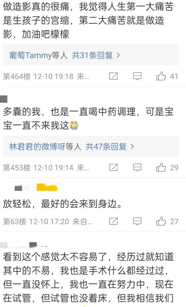 網友們都勸張檬應該放鬆下來,不要給自己太大的壓力,因為壓力越大,越焦慮就越容易懷不上,心理狀態對懷孕的影響也是很大的。