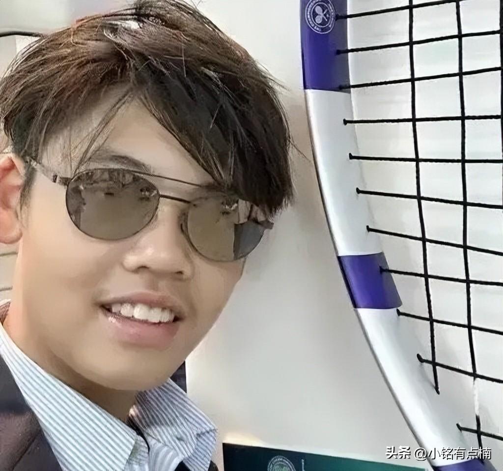 照片中,12歲的許建彤頭髮凌亂,前面的劉海偏向另一側,臉上帶著一副墨鏡,穿著條紋襯衫,外搭一身黑色西裝外套,打扮的樣子十分成熟,在加上青春期有鬍子,看起來不像小孩子的樣子,反倒跟20多歲的小夥子有點一拼。