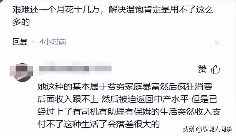 這些看似壓垮她的重擔,實則是她過往高消費生活的縮影。