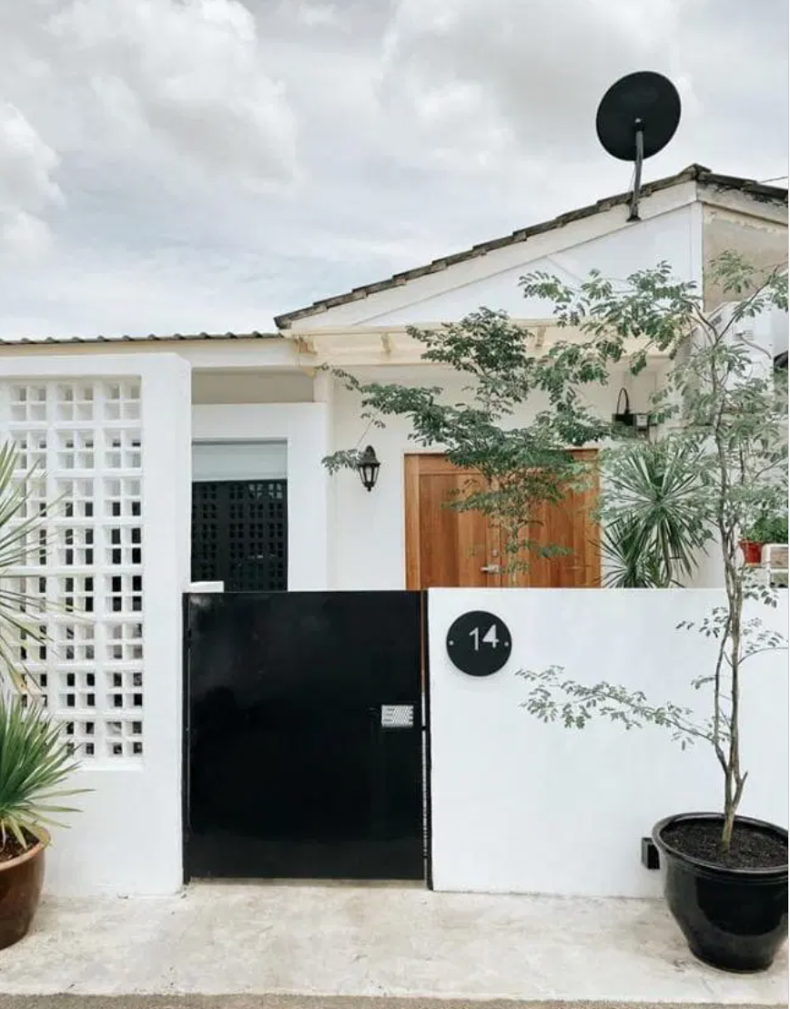 被改造後,不僅多了圍欄大門更有隱私性,整個建築色系採用最簡約的黑白兩色,加上木質調的大門綜合,看起來低調中又帶有奢華感~