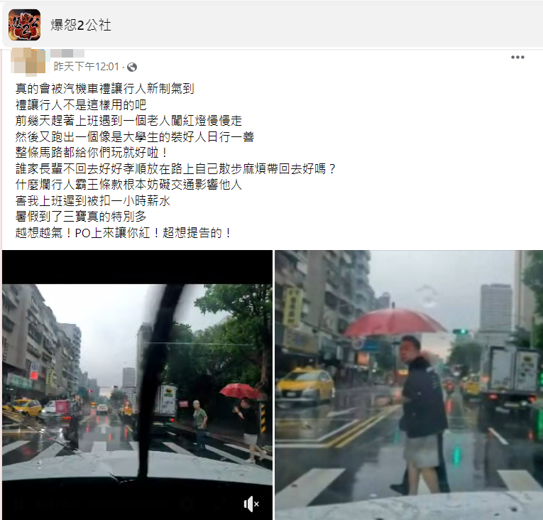 下雨幫老人撐傘!他怒「路人衝出馬路」害遲到 PO網肉搜「對方竟是綜藝大哥」...反被網友洗臉!