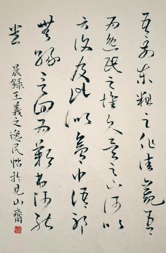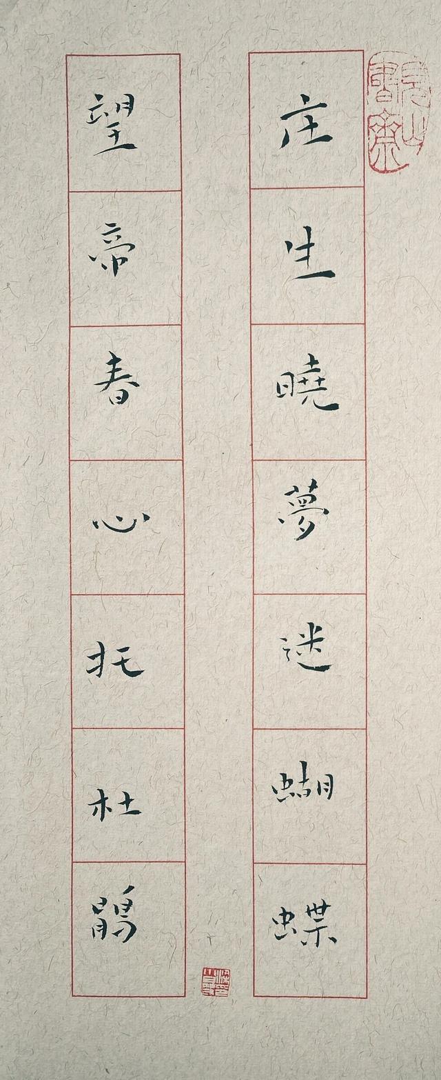 寫字是她的日課。只要有條件,她幾乎都會練習寫字,即使出外也將筆墨紙硯裝在行囊,清晨一件一件取出,整齊地擺放在旅館的木桌上。