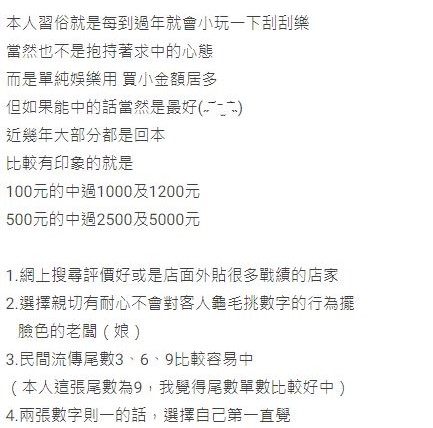 除了網友的經驗分享,一名彩券行從業人員也在網路上公開他長期觀察歸納的「中獎技巧」。這位員工表示自己在家中彩券行幫忙超過十年,累積豐富經驗後整理出刮刮樂的重要訣竅,甚至自信滿滿地保證能讓大家提升中獎機會。相較於一般網友的經驗談,彩券行業內人士的觀察或許更具參考價值,讓不少網友直呼「原來以前都買錯方向了」。