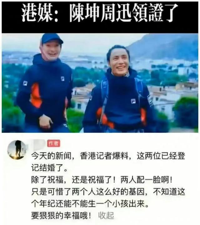 據《ETtoday星光雲》報導,昨(24)日,香港知名娛樂記者「朱皮」爆料稱,周迅與陳坤已領證結婚,並由西藏某寺廟的大師負責主持婚禮。消息曝光後,微博上也有人聲稱,在機場撞見周迅和陳坤兩人,更說女方疑似有喜,不過兩位當事人目前皆未回應。