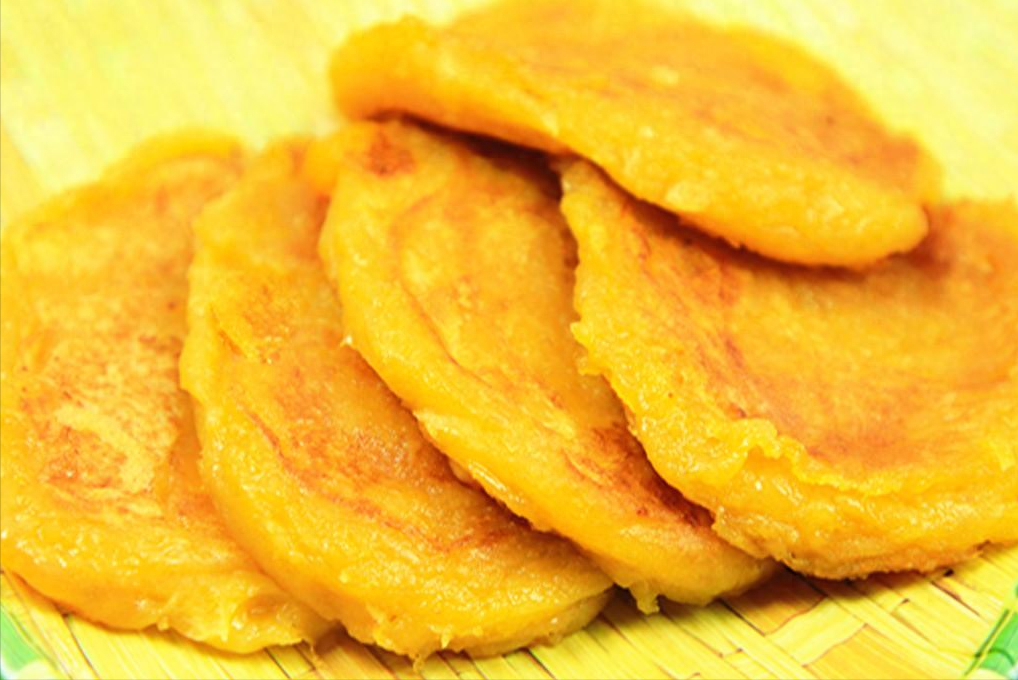 2.柿子肉壓成泥,加入適量的蜂蜜,倒入麵粉100克,攪成酸奶狀的柿子麵糊,不能太稠了、不然烙出來的柿子餅發硬。