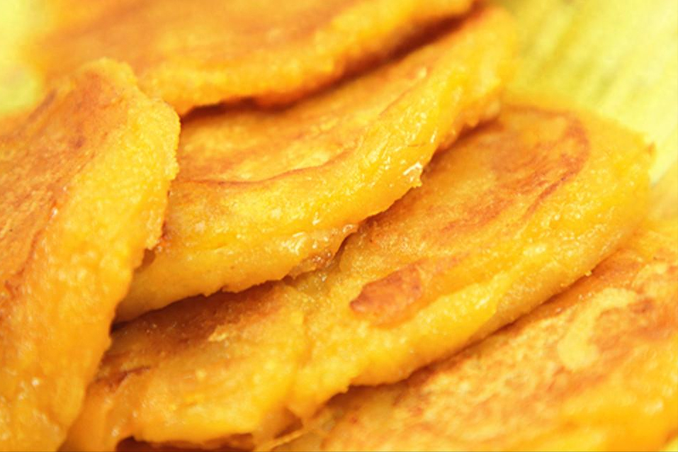 4.來回多翻幾次,把柿餅煎到兩面金黃就可以出鍋了,金黃柔軟、鮮甜可口。