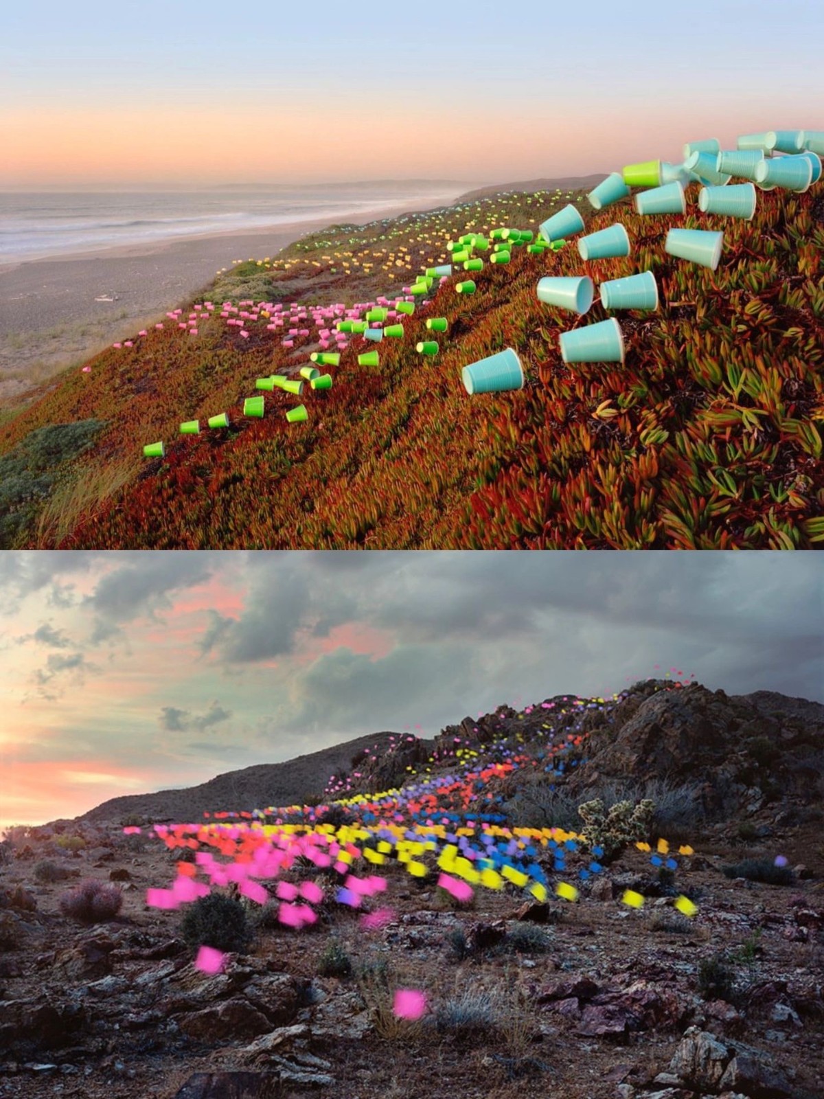 看見風的形狀!藝術家「將日常物品綁上細線」散落戶外 微風吹過「紙杯碗盤飛揚空中」奇幻又浪漫❤️