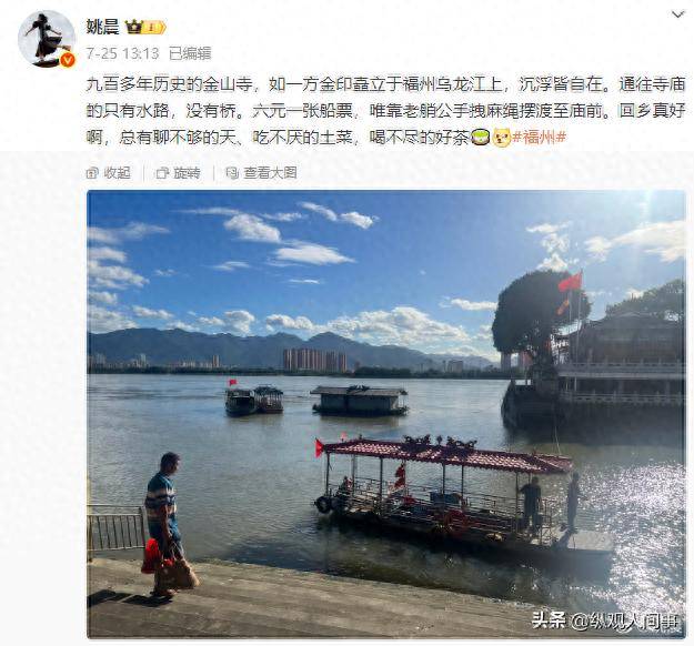 在7月25號的時候,姚晨在微博曬照自己去了福州遊山玩水,逛寺廟放鬆心情。