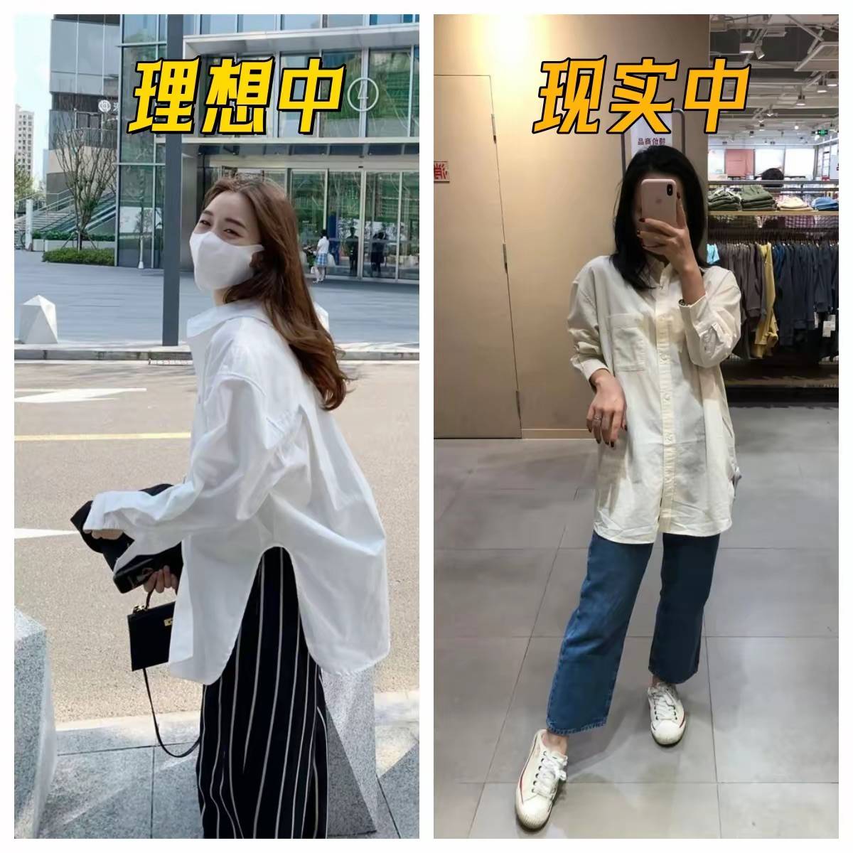 別人穿寬鬆襯衫,是時髦清爽又洋氣,你穿寬鬆襯衫、則透著土氣。身材不夠好、就不要硬往上湊了。