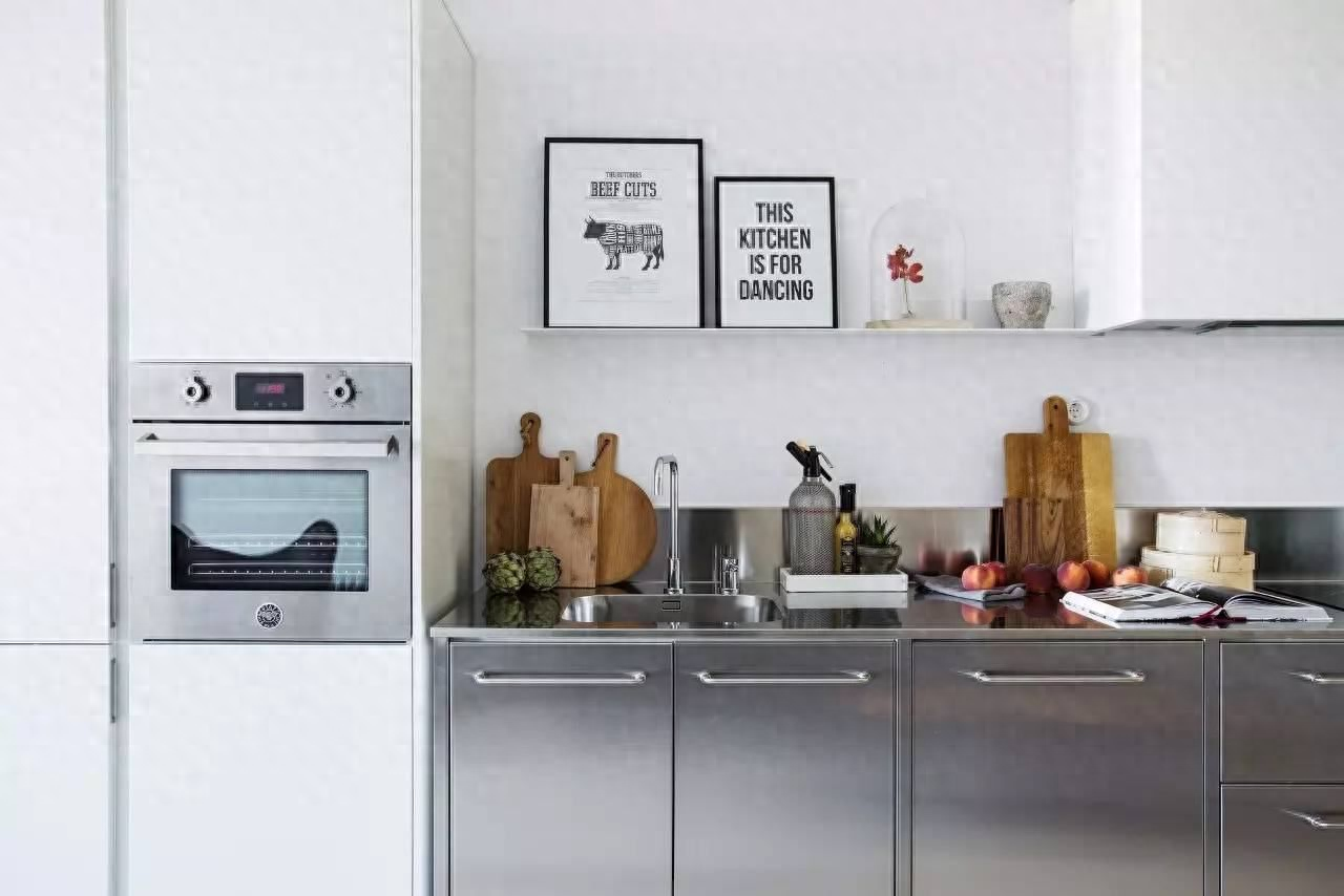 不鏽鋼檯面的設計簡潔、優雅,可以為家居增添一份現代感和時尚氣息。其銀色的光澤與其他高檔材質的廚房電器和餐具相得益彰,使整個廚房空間更加美觀。