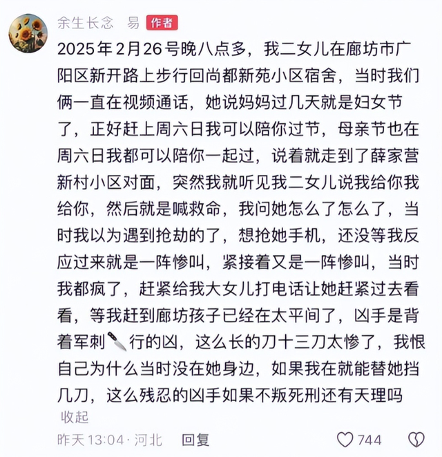 就在昨天,她們還通了電話,女兒笑著跟她說:「媽媽,您放心,我工作得挺好的。」可誰能想到,如今這一切都成了過去。