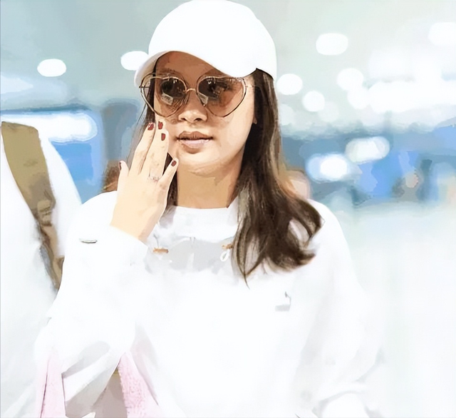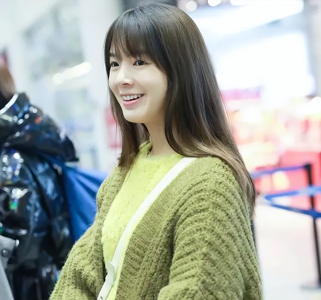 機場照中的陳瑤,剪了空氣劉海,似乎想要營造少女感。