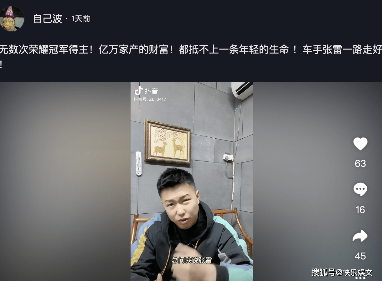 據悉,張雷並不是一位普通的賽車手,他的個人身家非常豐厚,坐擁億萬身家,沒想到卻這麼年輕就去世了。