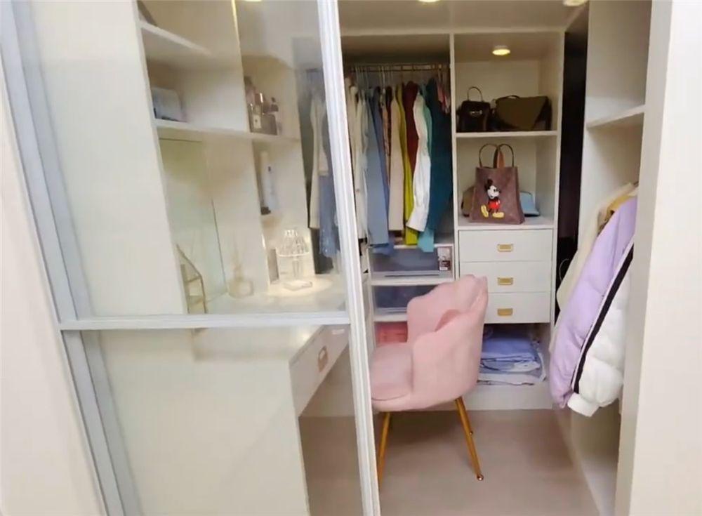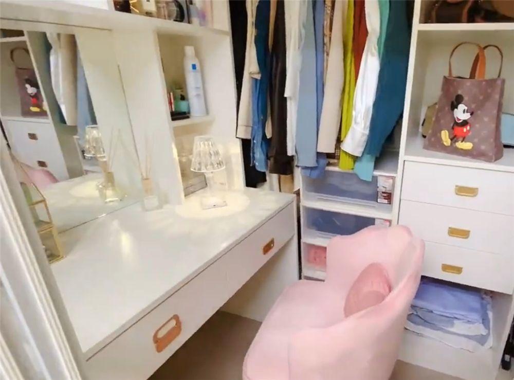 這個小空間不僅能當做衣櫃,收納姑娘的各種衣物,同時化妝桌也提供了梳妝護膚、工作學習的區域,空間利用非常合理。