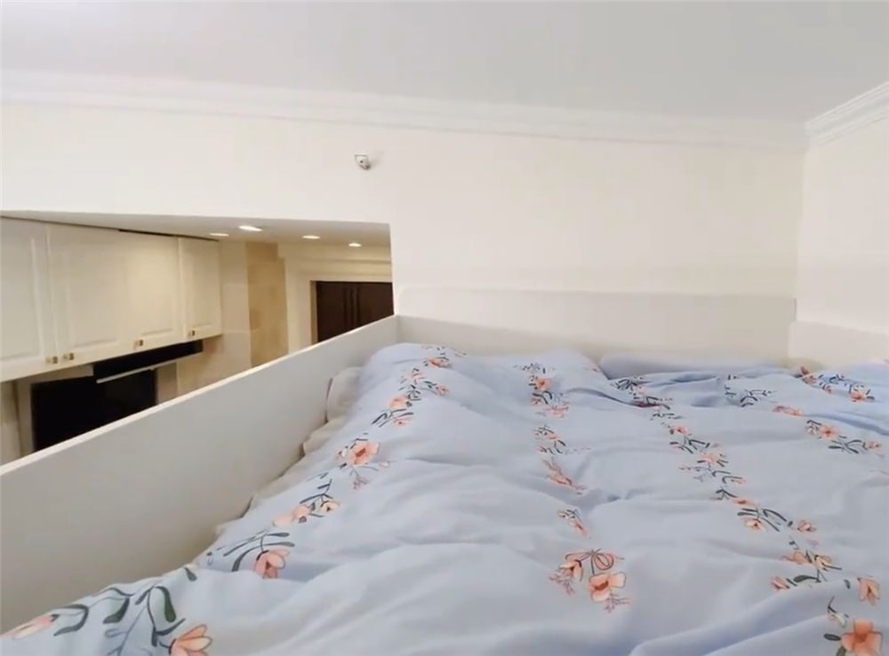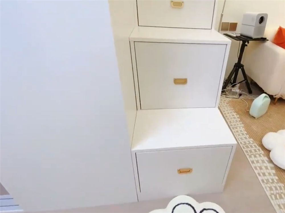 利用2米9的層高,姑娘勉強做出了夾層卧室,步入卧室的樓梯都被她做成了一個個的收納抽屜,提升小戶型的收納能力。