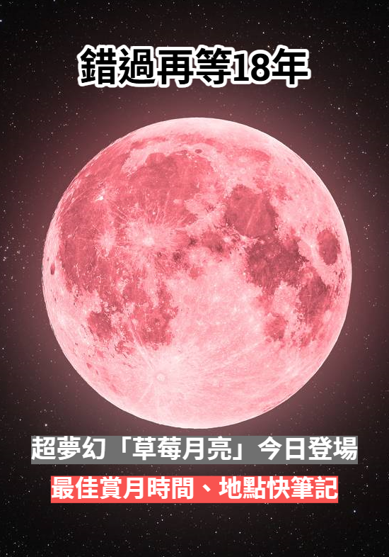 錯過再等18年!超夢幻「草莓月亮」今日登場 最佳「賞月時間、地點」快筆記