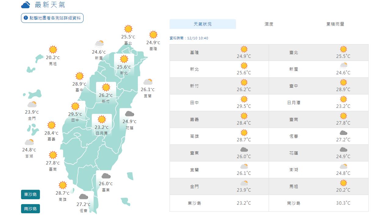 根據「報天氣 - 中央氣象署」指出,明日(11日)盛行風逐漸轉為偏南風,各地溫度回升,天氣大多為多雲到晴,僅東半部地區有零星降雨機會。周二(12日)和周三(13日)東北季風稍增強,北台灣地區高溫降幅較明顯,明顯感到涼意,中南部地區則影響較小。至於周四(14日)、周五(15日),除東半部有局部短暫雨外,其他地區則是多雲到晴。