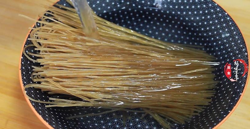 2,粉條提前剪短一些,然後用清水浸泡上,準備一塊豆腐,咱們給它切成1厘米左右的薄片。