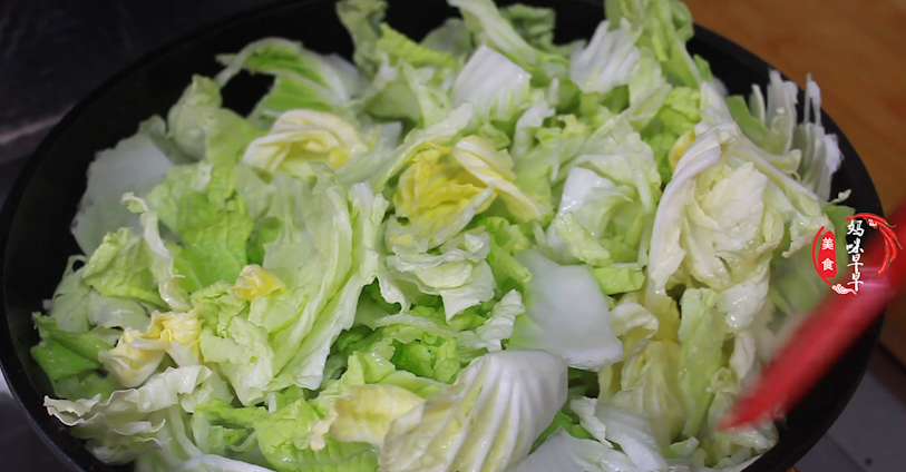 4,鍋裡留點油,咱們先把白菜炒一下,因為白菜水分比較多,把水炒出來,燉出的白菜口感不會軟綿綿的,炒軟後就盛出來備用。