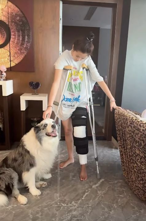 而在鍾麗緹分享的最新動態中,可以看到Jaden雖然左腿需要戴著厚重護具,行動不便需要拄拐杖,但仍保持樂觀態度,甚至還能溫柔地撫摸家中的寵物狗,展現出堅強的意志力。據醫生評估,Jaden這次的傷勢需要約半年時間才能完全康復。令她擔憂的是,鍾麗緹的小女兒張凱琳仍堅持要繼續參加排球訓練,讓鍾麗緹十分憂心,只能不斷叮囑要特別小心。