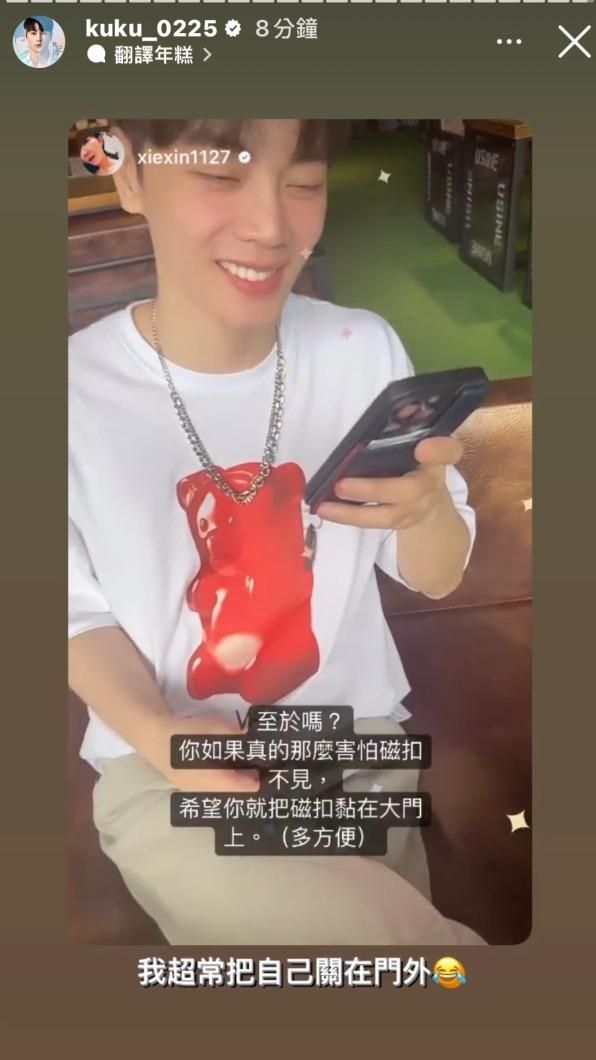 從謝忻的社群上來看,那段期間確實常發布露肩美照,與此次旅行的時間點正巧相符。她事後也透露,這則限動發布不久,立刻被許多網友追問回覆,她也搞笑評價對方的橡皮筋巧思,「古曜威太純樸了吧!」。對方經紀人則深表認同,「只要他能順利回家,這樣綁在手機上也挺方便的啦!」,足見2人的好交情。